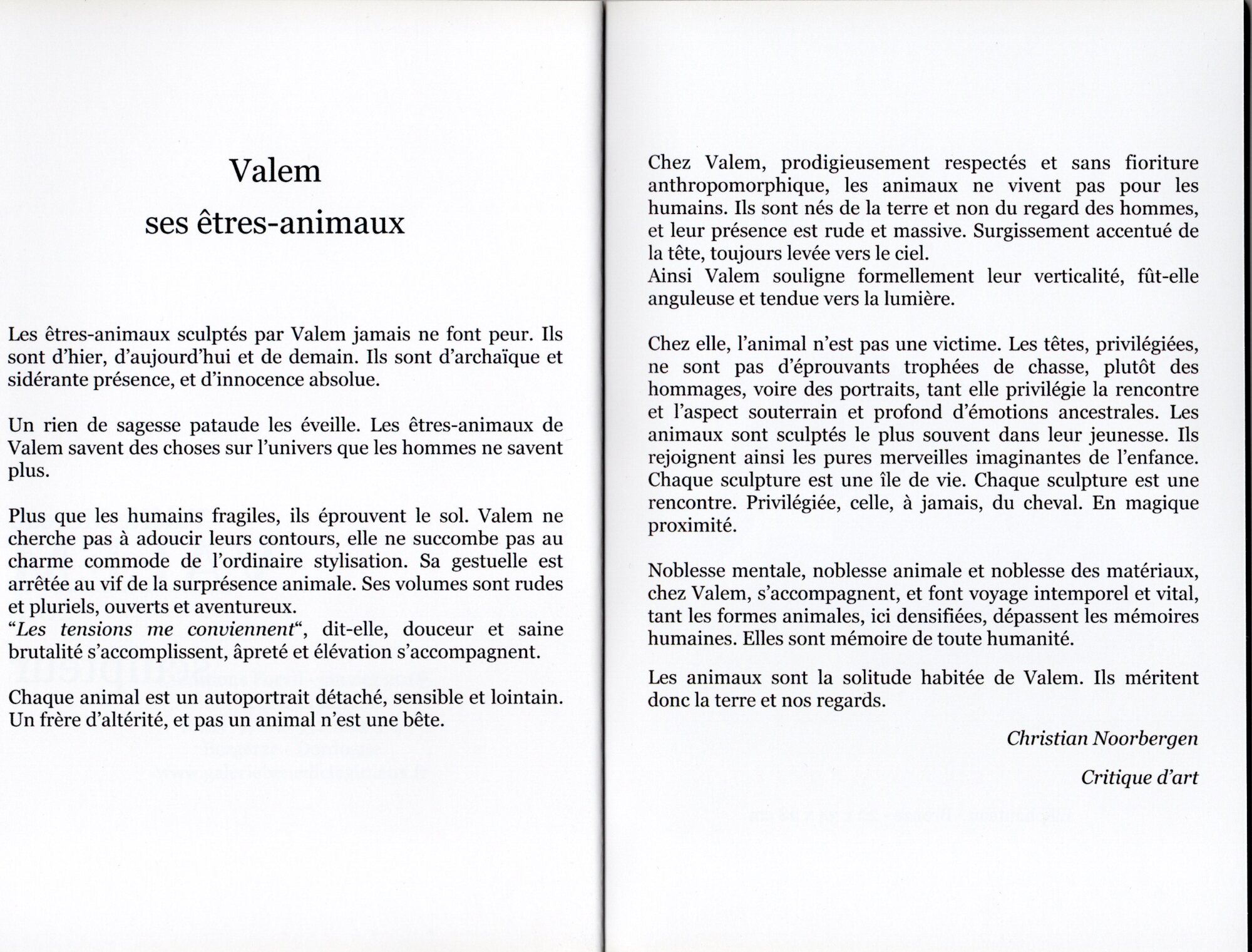 Textes de Christian Noorbergen, Bénédicte Giniaux, Valem